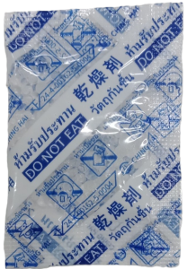 Silica Gel is a porous form of silicon dioxide that a type of desiccant. It typically comes in a small package and can absorb moisture more than 40% of its weight at 100% humidity. They prevent condensation and keep products dry in damp and humid conditions. Silica gel packages are used for products such as Vitamins, Shoes, Electronics, and dried food to help retain the product’s crispness and hardness.